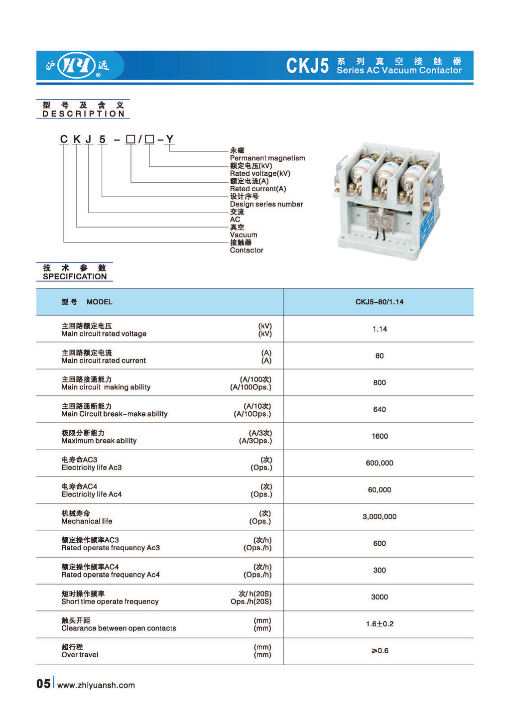 CKJ5-80/1.14-Y,沪远,HY,CKJ5系列交流真空接触器