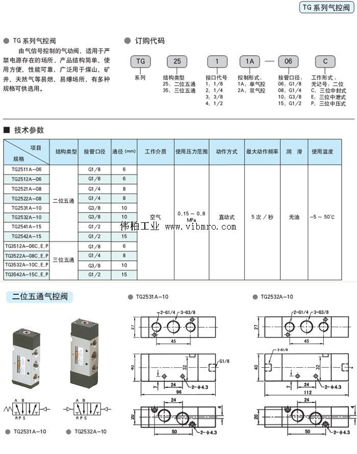 产品标题:TG2532A-10,STNC电磁阀,TG系列气控阀
